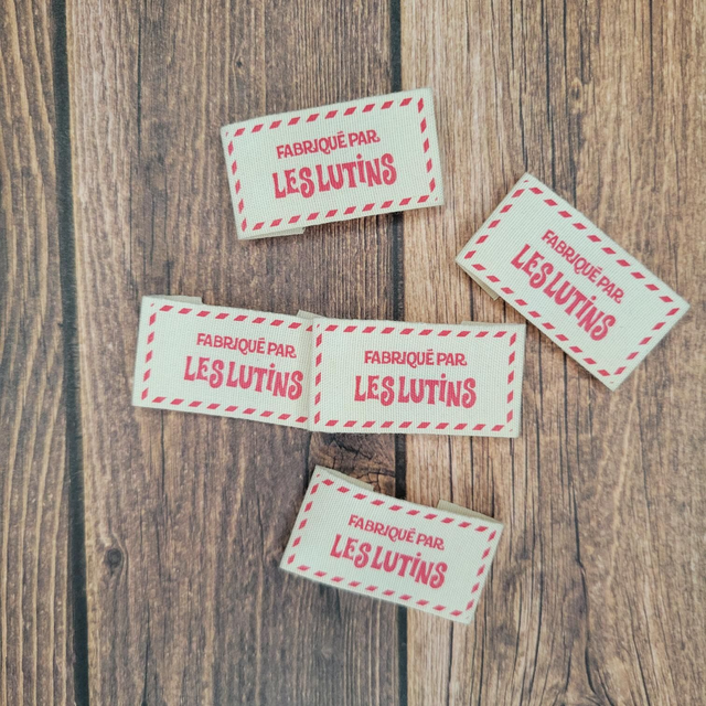 Lot de 5 étiquettes en coton bio imprimée "Fabriqué par les lutins" *